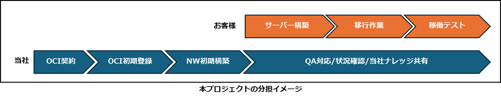 採用決定後、プロジェクトは速やかに始動し、3ヵ月という短期間でのクラウドリフトを実現するため、当社は現行環境調査、契約回線業者との調整、アーキテクチャ設計、OCI契約手続き、OCI環境構築、既存システムとのFastConnect設定まで、一連の初期導入業務を着実に遂行しました。
