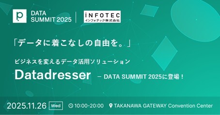 インフォテック株式会社は、2025年11月26日(水)に開催されるprimeNumber主催「DATA SUMMIT 2025」 にデータ活用ソリューション「Datadresser」を出展いたします。